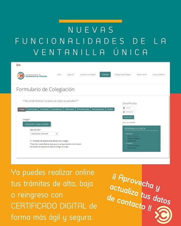 Ya puedes realizar online tu alta colegial con certificado digital,...