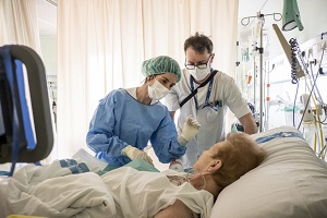 Dos enfermeros del Servicio de Urgencia Médica de la Comunidad...
