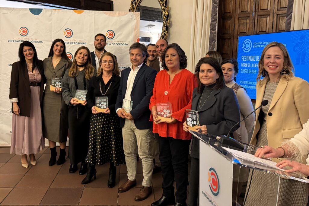 El Colegio Oficial de Enfermería de Córdoba ha celebrado el pasado viernes 6 de marzo, el Patrón de la Enfermería 2026, San Juan de Dios -que se conmemora el 8 de este mes-, con un acto en el que, además de rendir el tradicional homenaje anual a las enfermeras jubiladas y fallecidas en activo durante el pasado año, se ha reconocido la labor realizada por las enfermeras y enfermeros cordobeses que participaron en el trágico accidente de trenes de Adamuz del pasado 18 de enero, tanto en la asistencia en el lugar del siniestro como en el cuidado de los heridos trasladados a los hospitales. Enfermeras pertenecientes a atención primaria del Distrito sanitario Córdoba-Guadalquivir, al Centro de Emergencias Sanitarias 061, y a los hospitales Universitario Reina Sofía, San Juan de Dios, Quirónsalud y Cruz Roja de Córdoba.