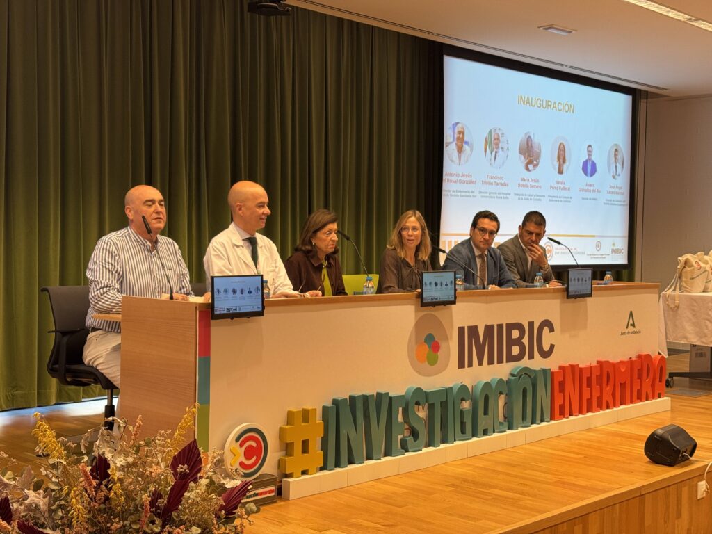 Natalia Pérez ha estado acompañada durante la inauguración por José Ángel Lázaro Mármol, director de Cuidados del Distrito Sanitario Córdoba-Guadalquivir, que ha puesto en valor la investigación enfermera que también se realiza desde los centros de salud de Atención Primaria; por Antonio Jesús Del Rosal, director de Enfermería del Área de Gestión Sanitaria Sur de Córdoba, para quien la investigación «ya no es un complemento, sino una necesidad»; Francisco Triviño, director gerente del Hospital Universitario Reina Sofia, que ha destacado la importancia de estas jornadas «porque permiten avanzar»; Álvaro Granados, gerente del IMIBIC, que ha resaltado el avance de la investigación enfermera en el marco de este instituto de investigación cordobés; y por María Jesús Botella, delegada de Salud y Consumo de Córdoba, que ha reiterado la idea de que la investigación se lleva ya a cabo «desde todos los ámbitos, en toda la provincia, desde la pequeña aldea a la ciudad», a la vez que ha recordado -tras mantener recientemente varias reuniones con el Colegio de Enfermería de Córdoba- las principales reivindicaciones del colectivo enfermero y su voluntad por trabajar para alcanzarlas.