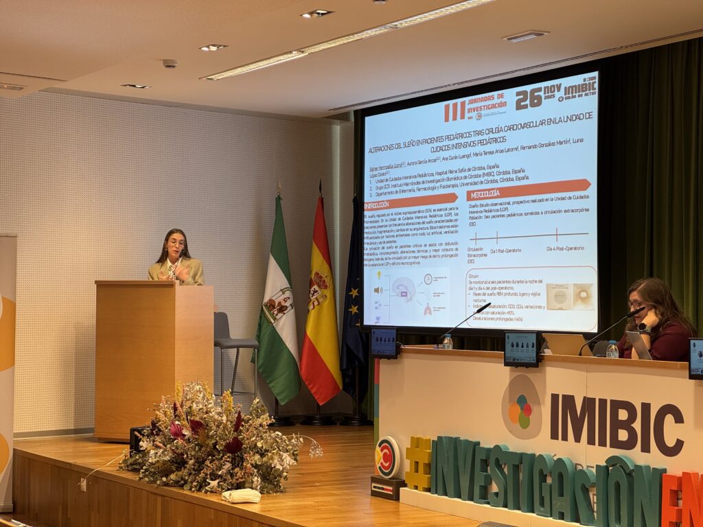 De estos 14 trabajos finalistas, el premio a la Mejor Comunicación Oral, dotado con 400 euros, ha sido para la enfermera de la Unidad de Cuidados Intensivos Pediátricos (UCIP) del Hospital Universitario Reina Sofía de Córdoba, Aurora García Arcos, por su trabajo sobre el ‘Impacto del entorno ambiental de UCI pediátrica en las variables fisiológicas tras la cirugía cardiovascular’. Esta investigación estudia cómo la recuperación de los pacientes pediátricos puede verse afectada por factores del entorno hospitalario, que pueden alterar sus ritmos biológicos y afectar sus constantes vitales y a la respuesta inflamatoria, lo que puede prolongar la estancia en la UCIP. «Para comprender cómo influye este entorno en los niños tras la cirugía -señala Aurora García-, analizamos de forma continua variables ambientales, como la luz, ruido y temperatura; junto con parámetros fisiológicos, tales como la frecuencia cardíaca y respiratoria, tensión arterial y temperatura corporal. En nuestro estudio, observamos que el ambiente de la UCIP actúa como un desincronizador que afecta de manera significativa los parámetros fisiológicos de los niños. Por tanto, mejorar estas condiciones podría favorecer su recuperación, reducir complicaciones y aliviar la carga sobre las familias y el sistema sanitario».