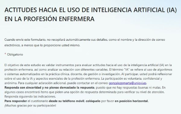 Colaboración con estudio sobre las actitudes de las enfermeras hacia el uso de la Inteligencia Artificial